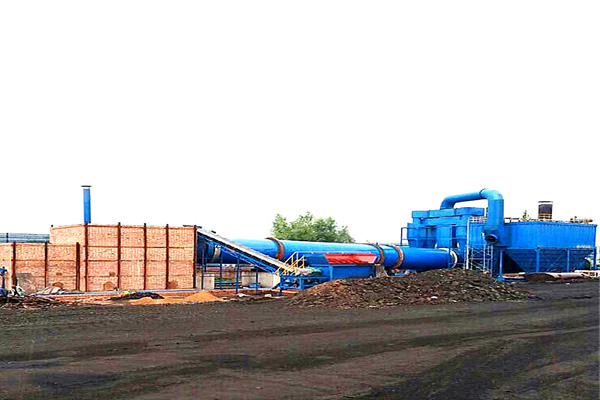 濕粉煤灰通過料倉進入均勻攪拌給料機中,設(shè)置攪拌給料機的作用就是確保給料量的穩(wěn)定連續(xù),保障設(shè)備運行平穩(wěn)。給料機通過將粉煤灰均勻布撒在輸送機上送至烘干機內(nèi)。進入烘干機內(nèi)的煤灰落在筒體的前端,由于前端焊接有導(dǎo)流板,所以物料會被導(dǎo)向設(shè)備的中部區(qū)域,粉煤灰在內(nèi)層的抄板下不斷抄起、散落呈螺旋行進式實現(xiàn)熱交換,在粉煤灰向尾部流動的過程中如此過程會持續(xù)幾十次,直至粉煤灰被完全烘干,物料從設(shè)備尾部流出,廢氣則被引風(fēng)機抽出機器外達到除塵器內(nèi)進行凈化。